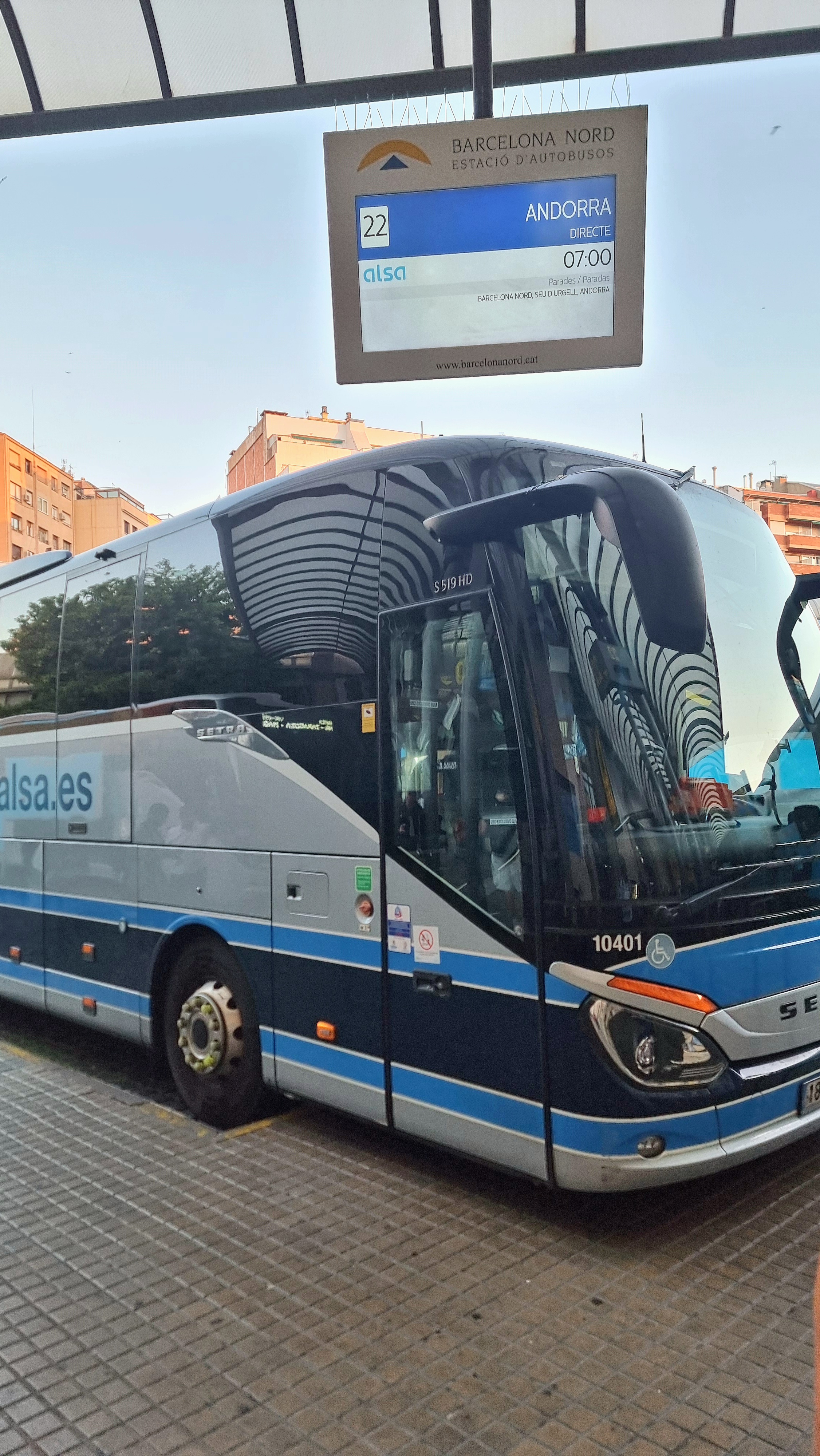 바르셀로나에서 버스를 타고 도착했다.