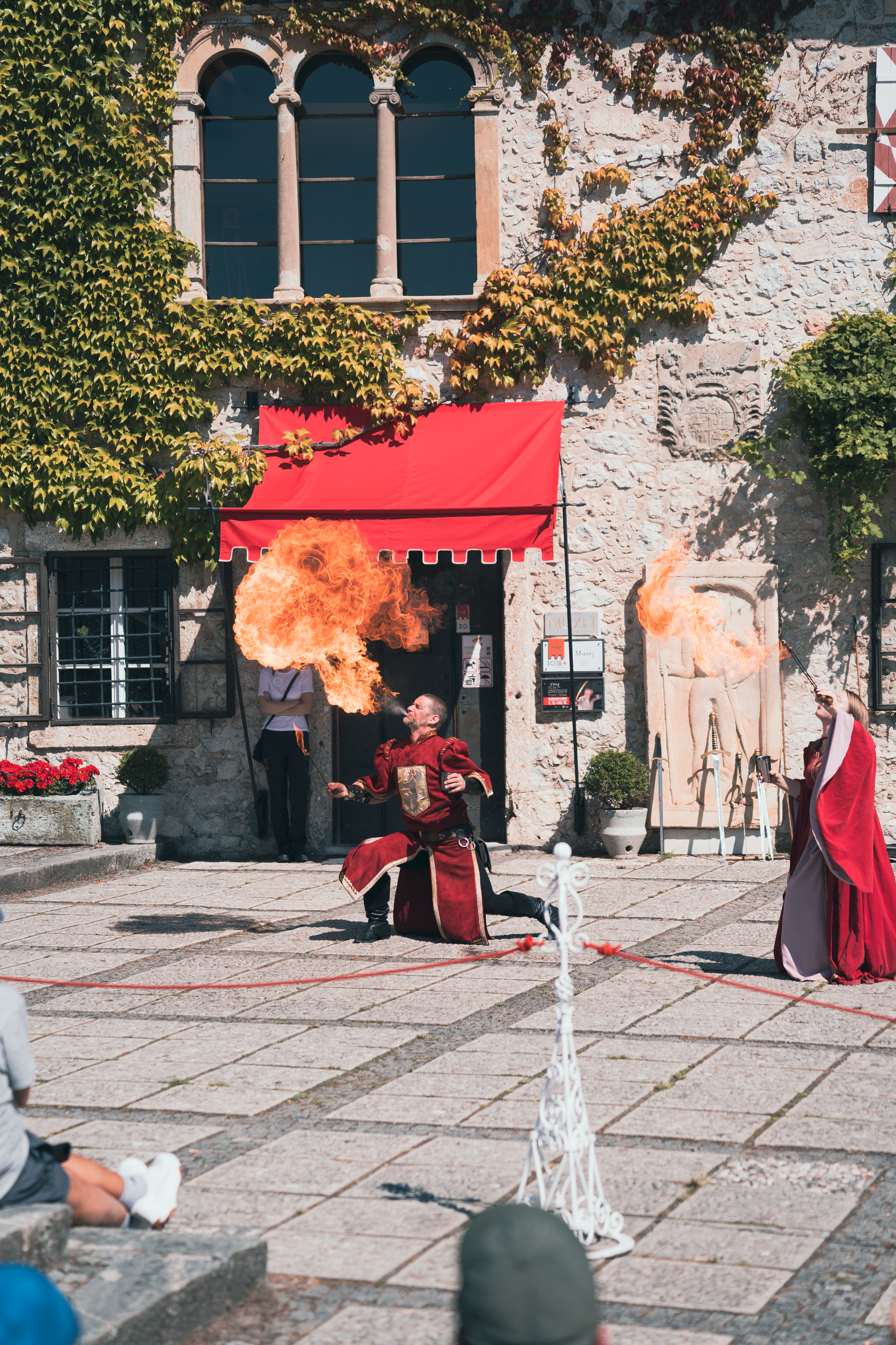 연기자들이 춤도 추고, 진검 대련, 불쇼를 보여주었다.
